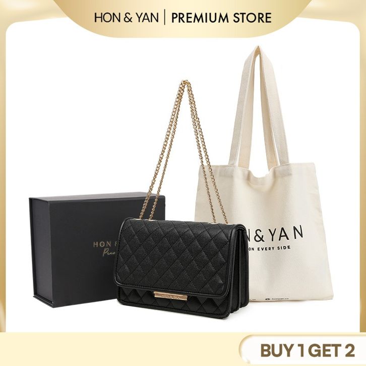 [ GIFT] HONYAN PREMIUM Tas Selempang Wanita Import Branded Ori - Louis Quilted Chain Sling Bag