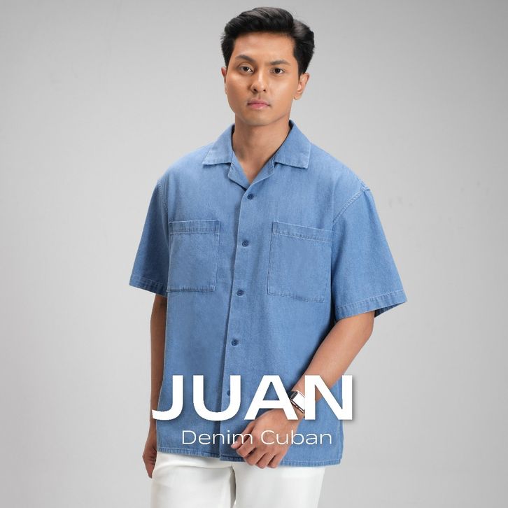 PROMO CUTOFF Juan Kemeja Denim Cuban Camp Bowling Shirt adosb