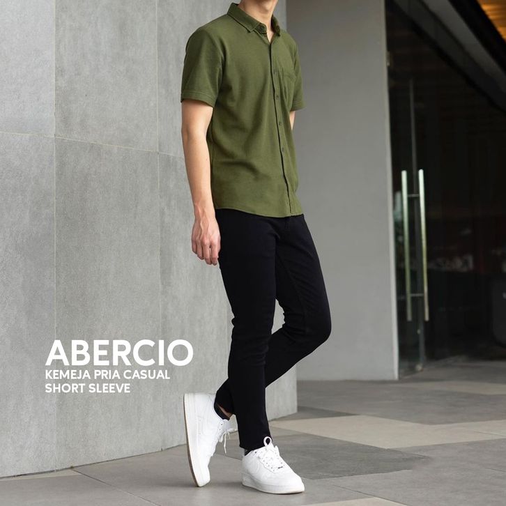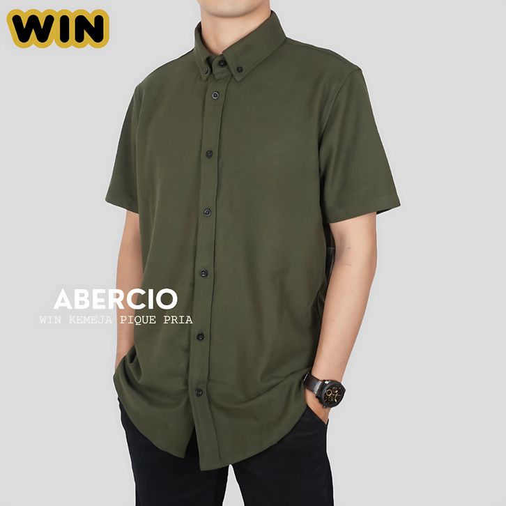 TERLAKU WIN - ABERCIO Kemeja Pria Lengan Pendek Warna Army Catton Pique Jumbo Big Size uhosr