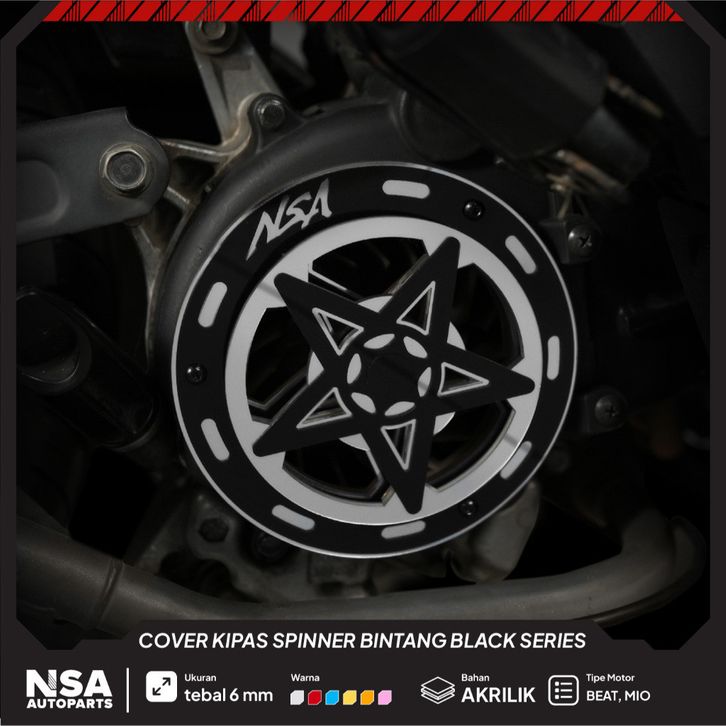 COVER RADIATOR KIPAS SPINER TYPE BINTANG BLACK SERIES BEAT SCOOPY VESPA MIO FILANO FAZZIO TUTUP PELINDUNG UNIVERSAL MESI