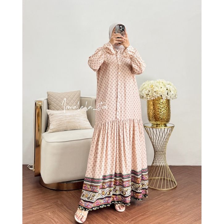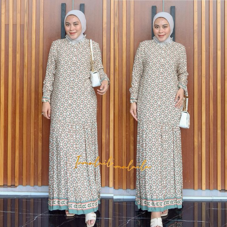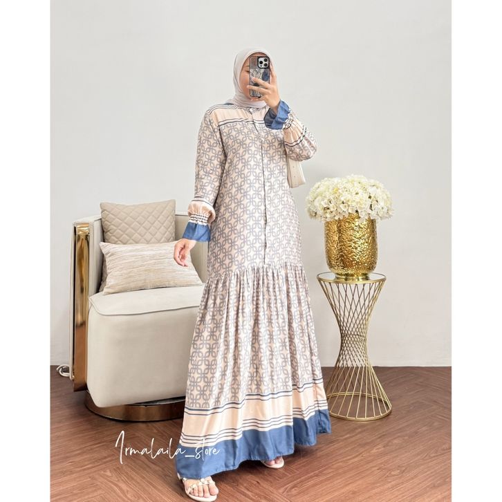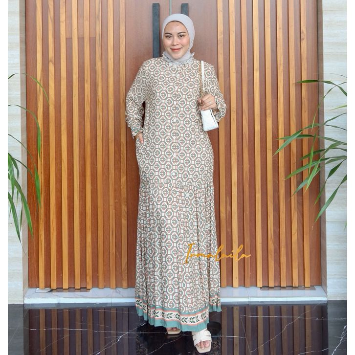 irmalaila - sakeena dress gamis mewah rayon motif adem lembut nyaman bumil busui friendly