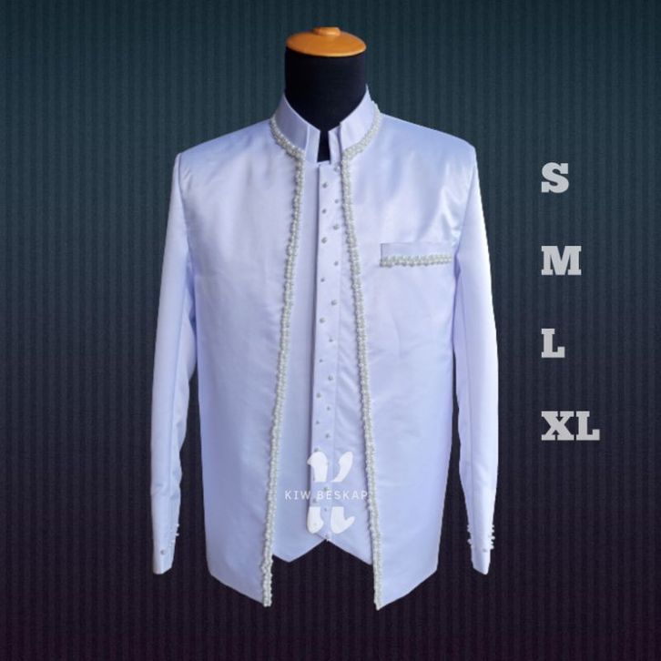 NEW Beskap Pengantin / Baju Akad Putih Tabur Mutiara ogoss