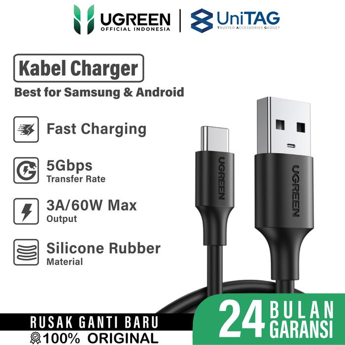 UGREEN Kabel Data Fast Charging Samsung Charger USB to Type C Rubber Cable