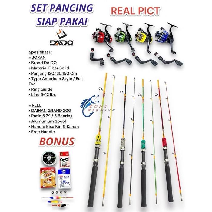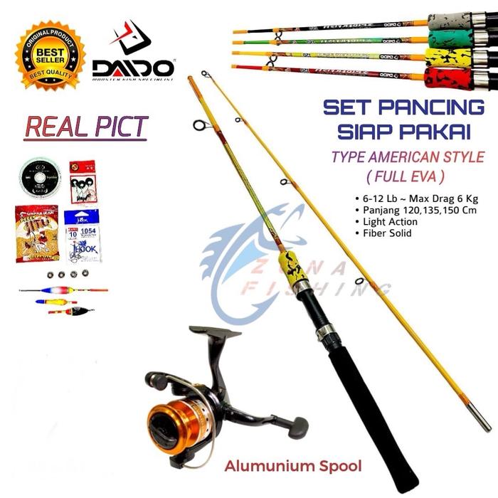 Set Joran Daido 6-9 Kg Kolam Galatama Komplit Siap Pakai - SET 1.20 Meter REEL ATOM 200 -