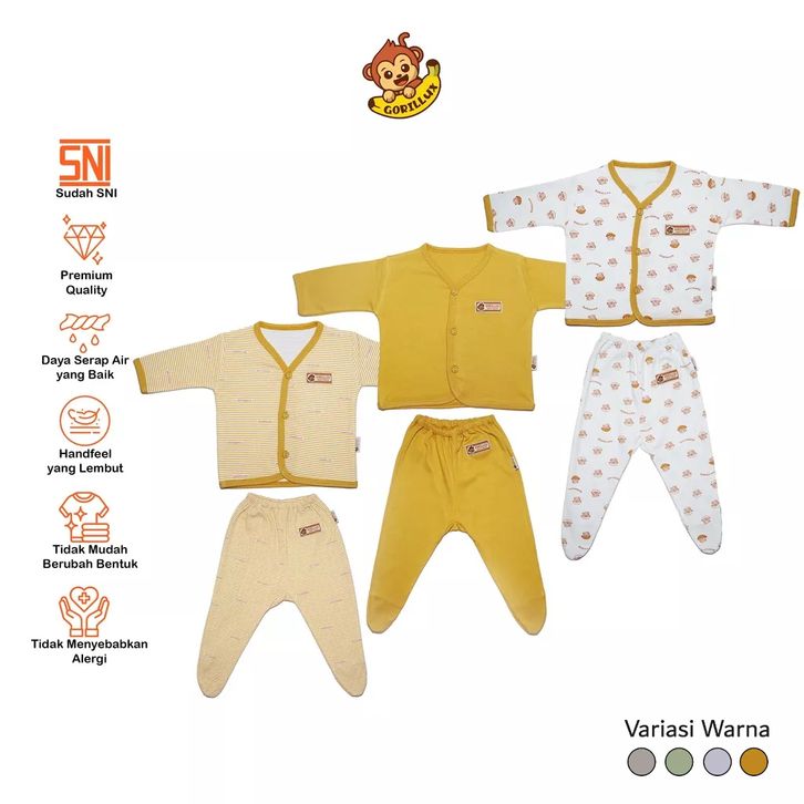 GROSIR GORILLUX PAKET 3 Setelan Baju Panjang Bayi (0-12 Bulan) iceds