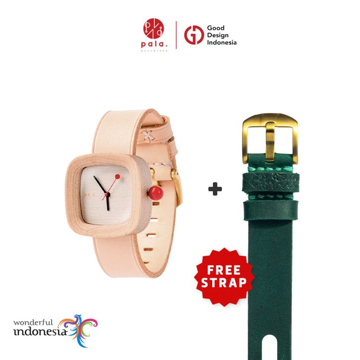 BUNDLING PALA NUSANTARA MINI NATURAL SPESIAL FREE STRAP - JAM TANGAN KAYU DAN KULIT PREMIUM DESAIN MINIMALIS UNTUK BERGA