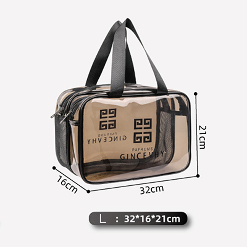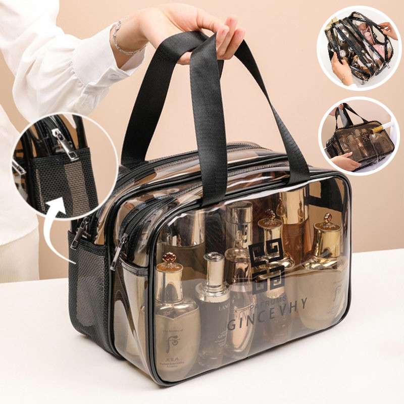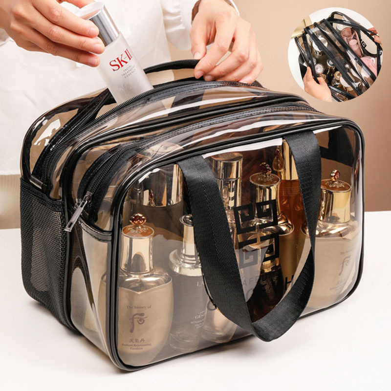 Wash Bag Double Layer Tas Kosmetik Lapis Ganda Transparan Tahan Air Berkapasitas Besar Yang Portabel 1.5L Kosmetik Tas Travel Organizer