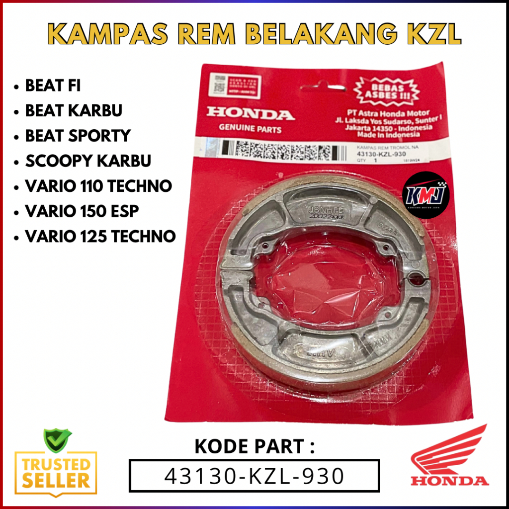 43130-KZL-930 Kampas Rem Belakang KZL Honda Beat FI Beat Karbu Beat SPORTY Scoopy Karbu Vario 110 Techno Vario 150 ESP Vario 125 Techno