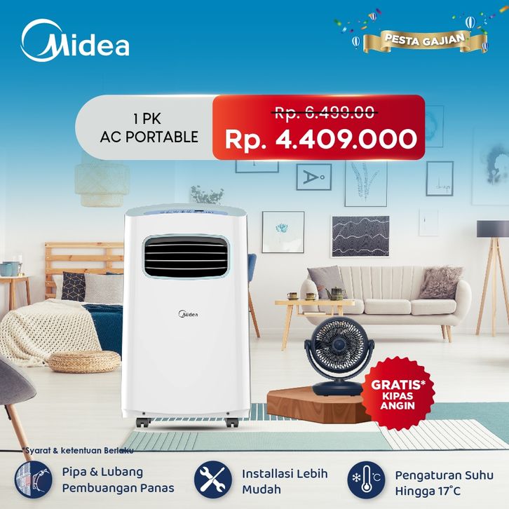 Midea AC Portable 1 PK MPF2-09CRN1 - Green, Auto Swing, Filter Ulang