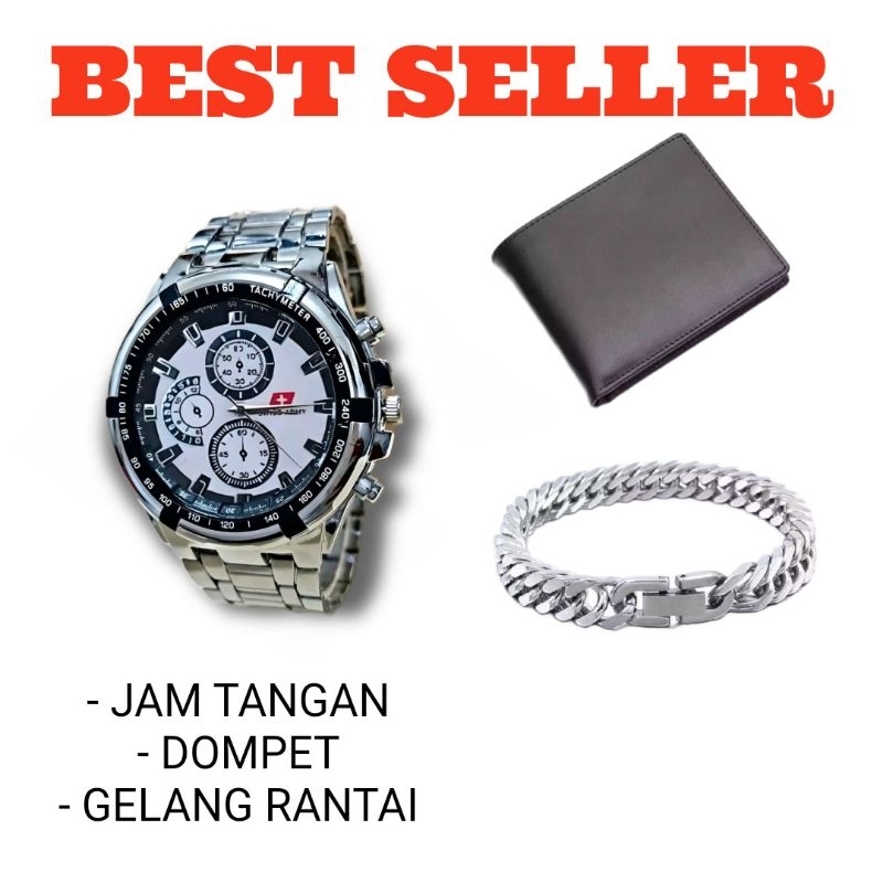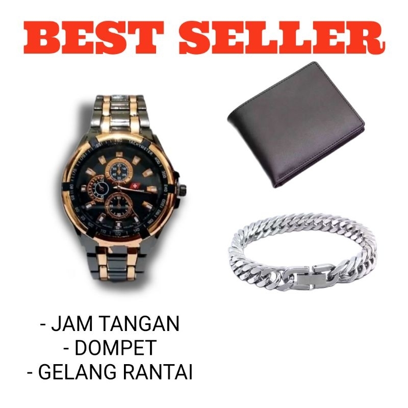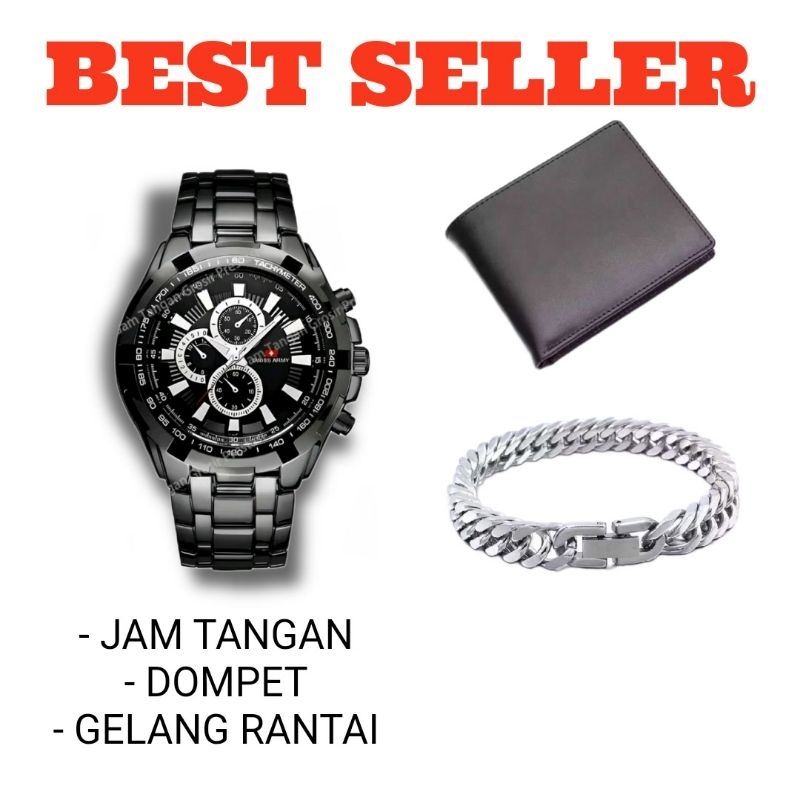 Jam Tangan Pria SA Rantai Sport Free Dompet & Gelang Rantai Keren Paket Super Hemat
