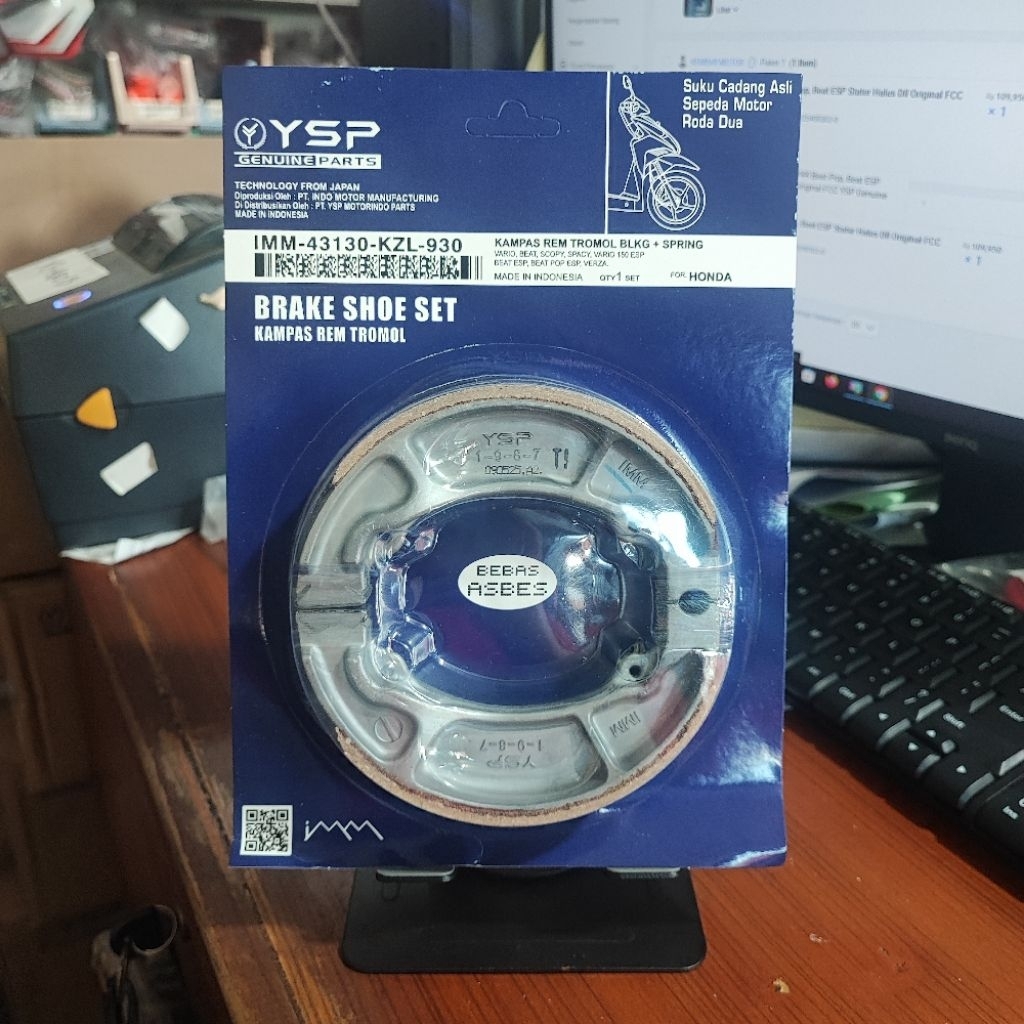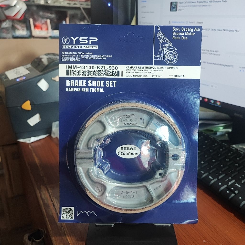 Kampas Rem Tromol Belakang + Spring Kemasan Press KZL Beat/Vario/Scoopy Original FCC YSP Genuine Parts