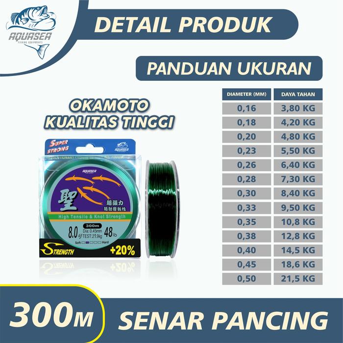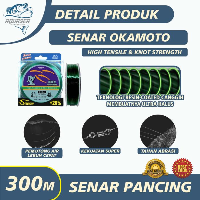 AQUASEA Tali Pancing Nilon Okamoto Hijau 300M Alat Ikan Joran Umpan - 016mm OKAMOTO