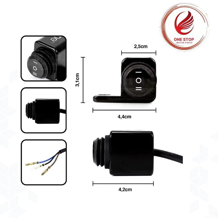Tombol Switch HB8s Saklar Lampu Motor Kiri Kanan 3 Fungsi Spion Motor Waterproof - NINE AUTOSERIES
