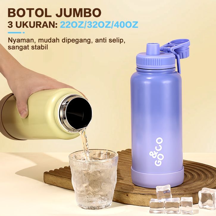 tumbler stainless tahan panas dingin GO&CO Botol Minum Besar 40oz/1200ml Tumbler Stainless Steel 304 Tumbler Anti Tumpa