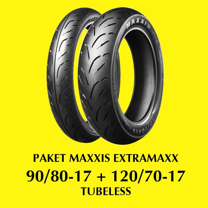 MAXXIS EXTRAMAXX 90/80-17 + 120/70-17 PAKET 2 BAN TUBELESS RING 17