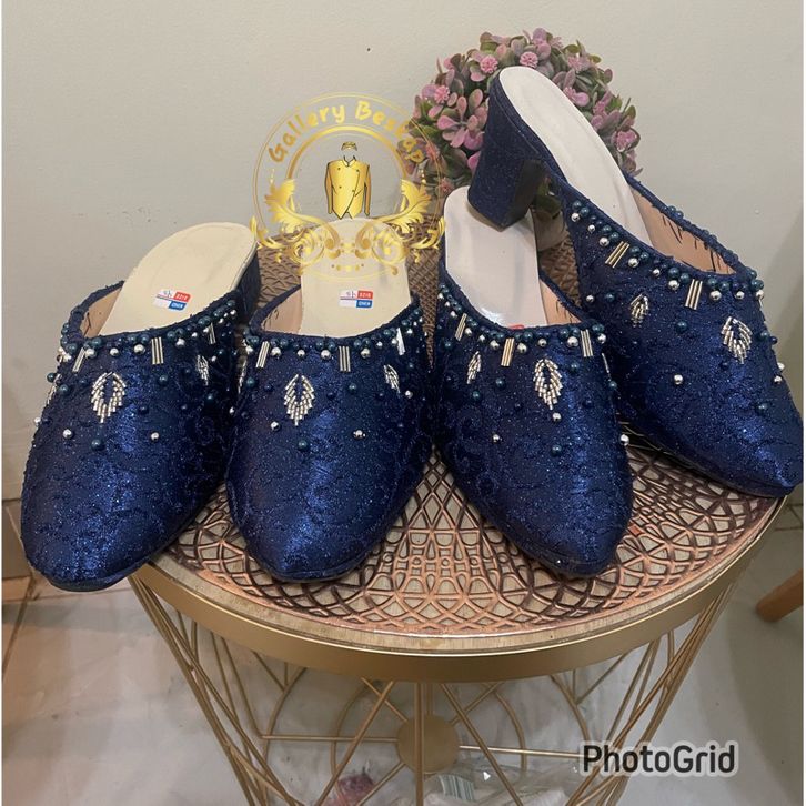 NEW Sendal selop pengantin mewah / wedding shoes navy ohofl