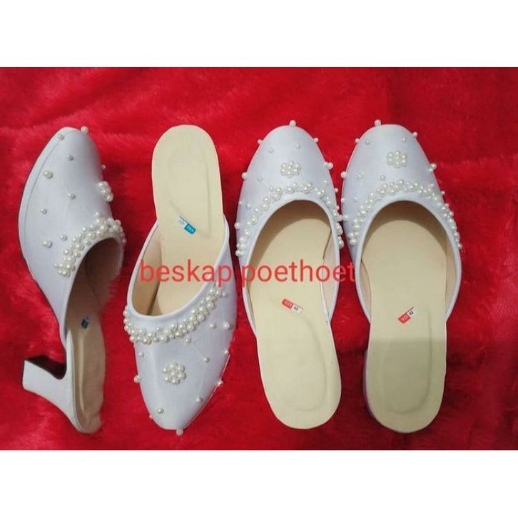 TERLAKU wedding shoes slop manten pengantin Jawa sendal sandal sepatu putih akad nikah icosc