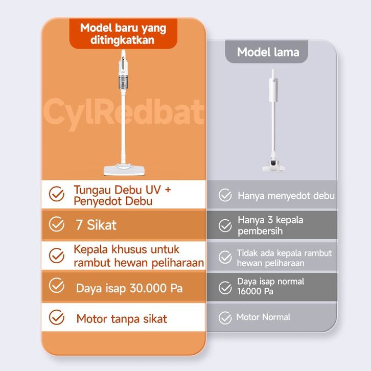Vacum Cleaner CylRedbat UV Vacuum Cleaner Penyedot Debu 30000Pa Cordless Portable kucing Anti Dust Mite alat pel lantai