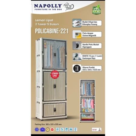 POLICABINE NAPOLLY 221 HANGER + RODA - Lemari Lipat Pakaian Anak Plastik Hanger + Rak / Cabinet Plastik