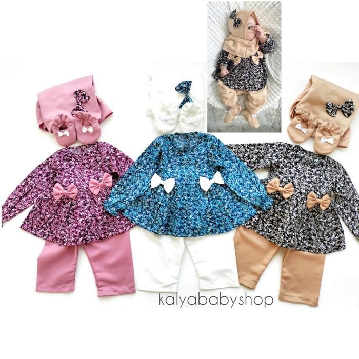 ONESET MUSLIM BAYI PEREMPUAN SETELAN MUSLIM BAYI FREE JILBAB SEPATU - mocca, S