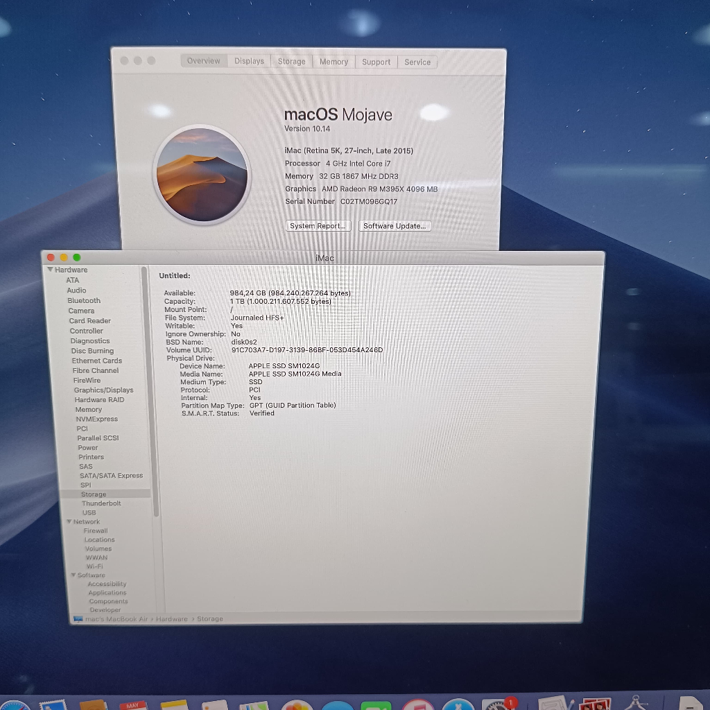 Special Second Imac 27-Inch Slim Late 2015 5K Seri A1419 Core i7 Procecor 4 Ghz Ram 16GB Ssd 256GB