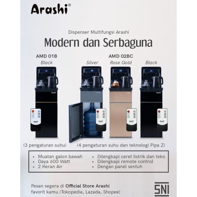 Dispenser Multifungsi Arashi Amd 02B Terbaru Standing Dp0 Berkualitas Panas Dingin Es Murah Galon Bawah