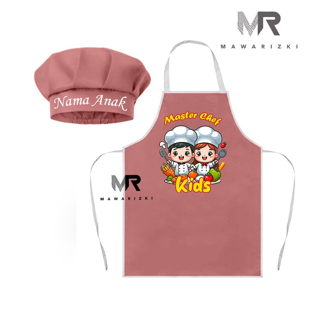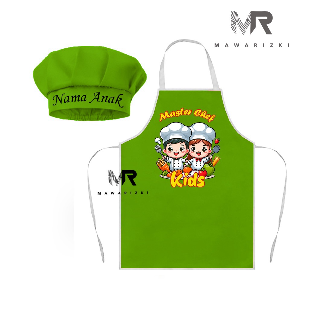 Baju Koki Anak Perempuan dan Topi Chef Anak Laki Laki Free Bordir Nama