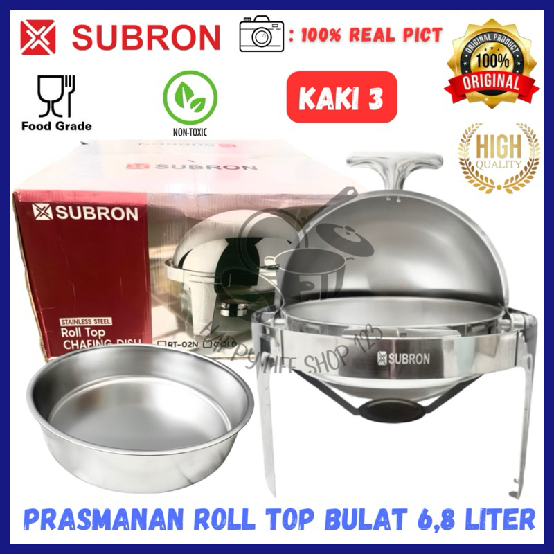 Wadah Prasmanan Sop SUBRON Round Chafing Dish Prasmanan Roll Top Stainless Steel 6.8 Liter Tutup Stainless