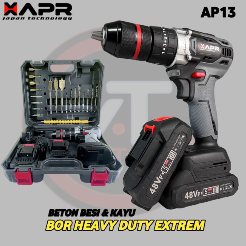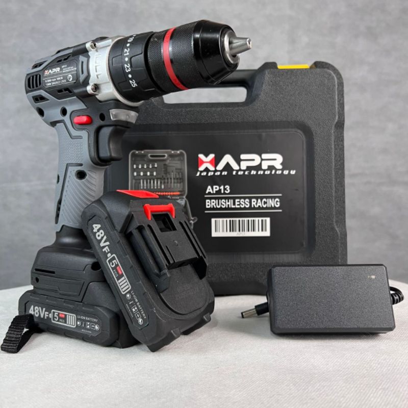 Bor cordless APR 48V 13MM AP13 Chuck keyless Metal Brushlees 3 Mode Bor tanpa kabel bor beton bor besi kayu