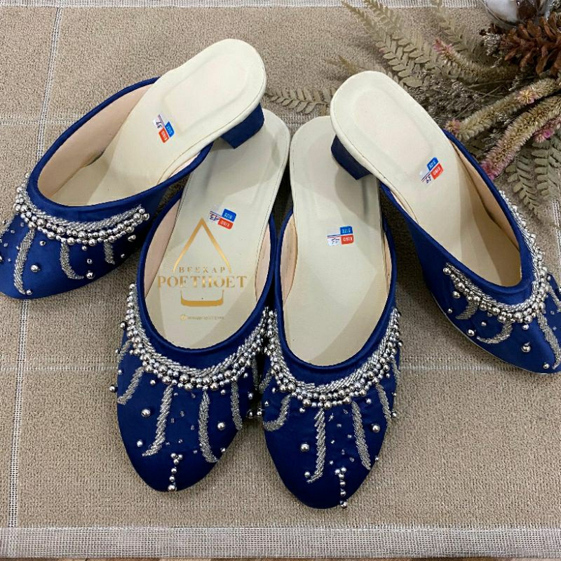 wedding shoes sendal selop Jawa sandal pengantin biru navy payet Silver pria dan wanita