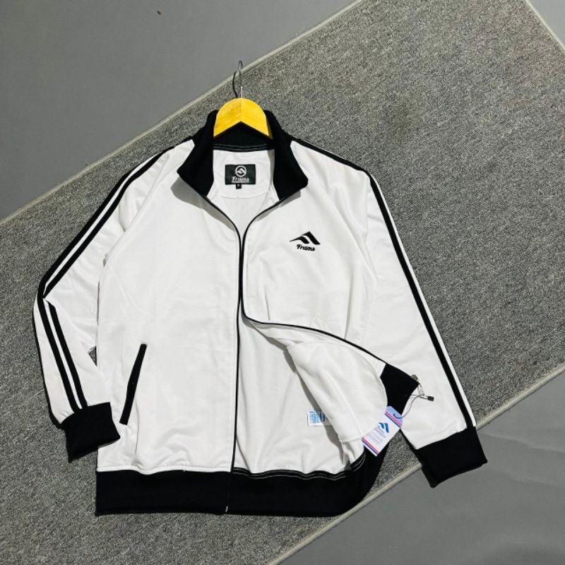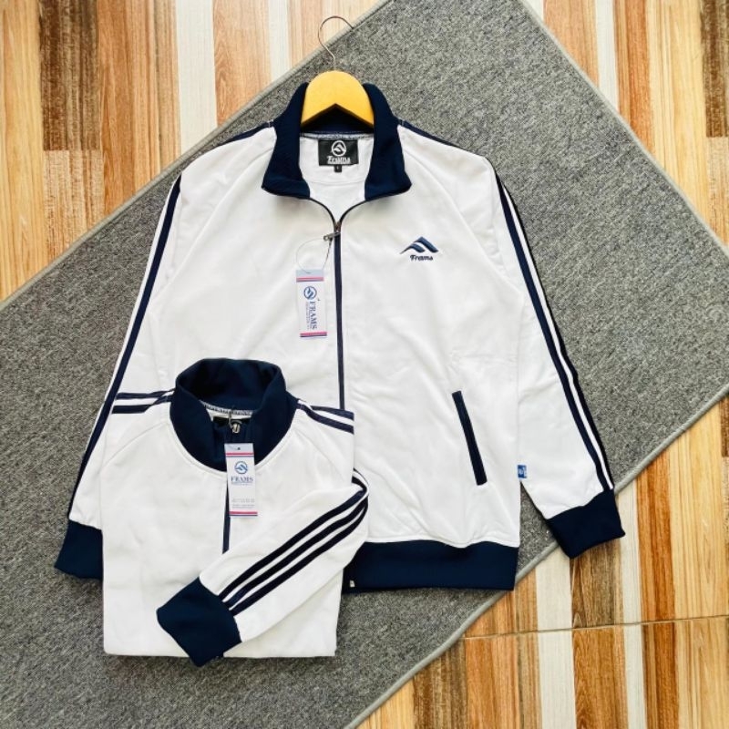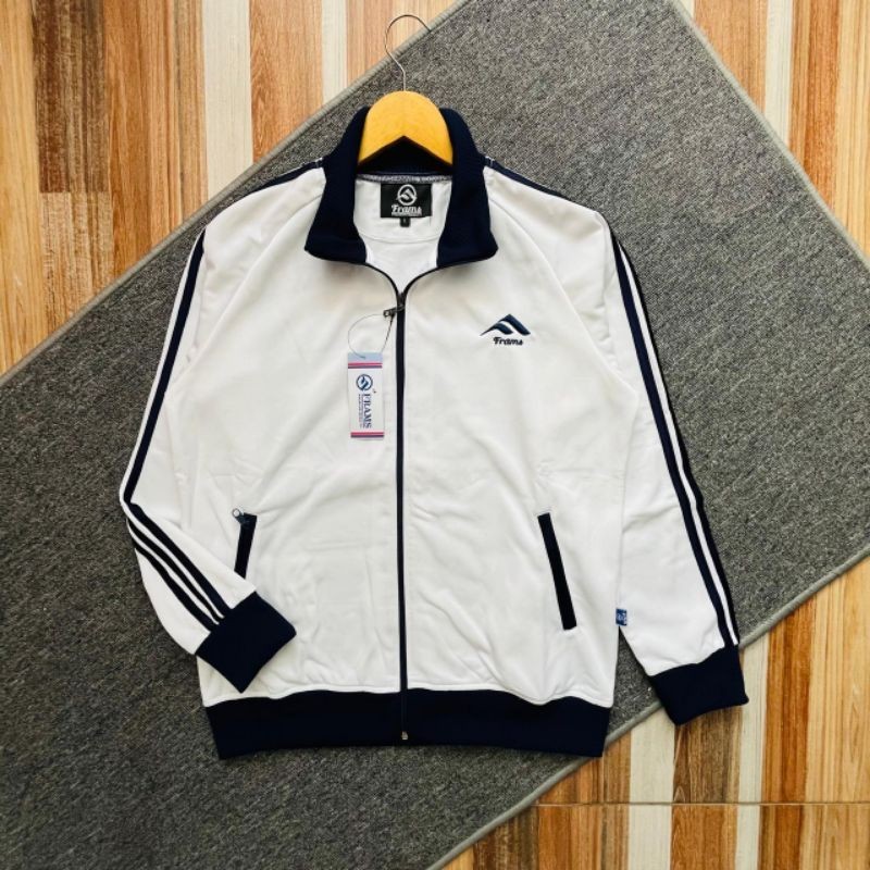 Jaket Tracktop FRAMS Mode 3foil Putih Plat NAVY