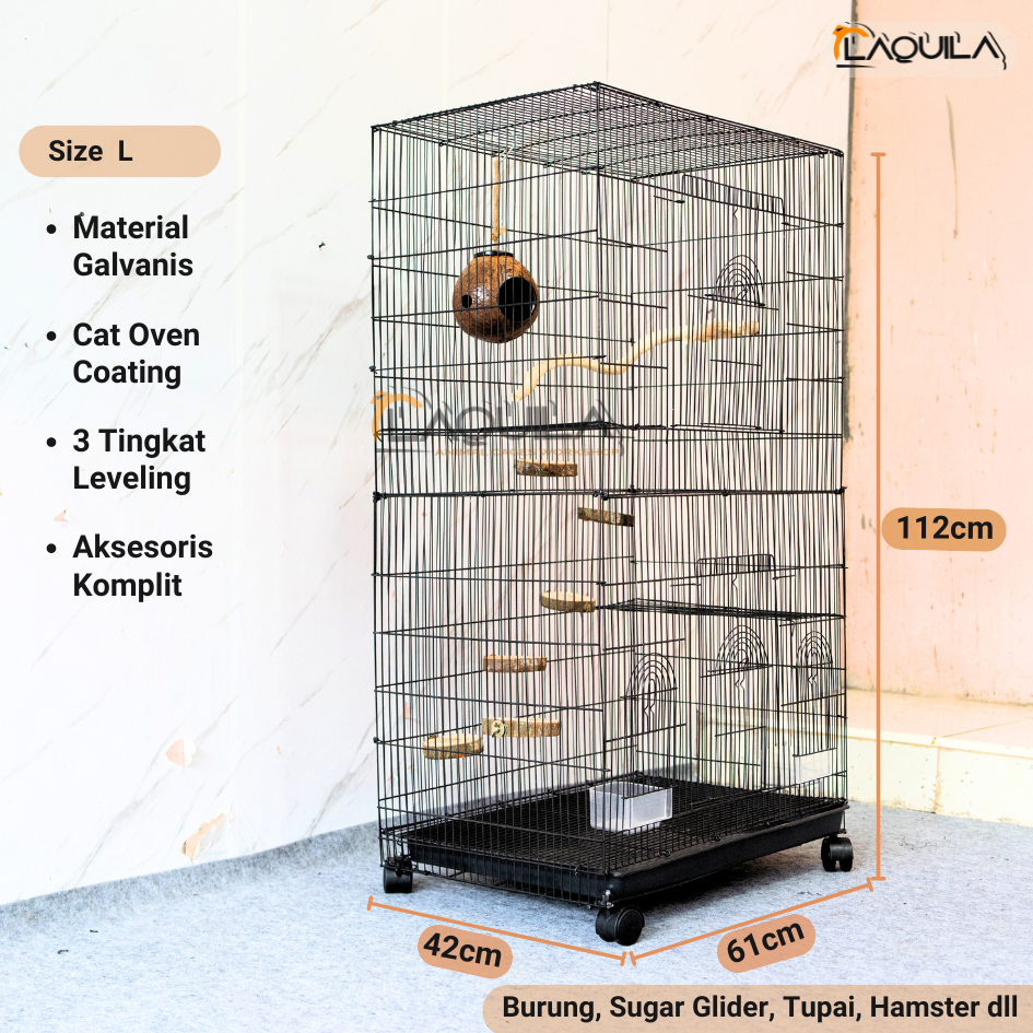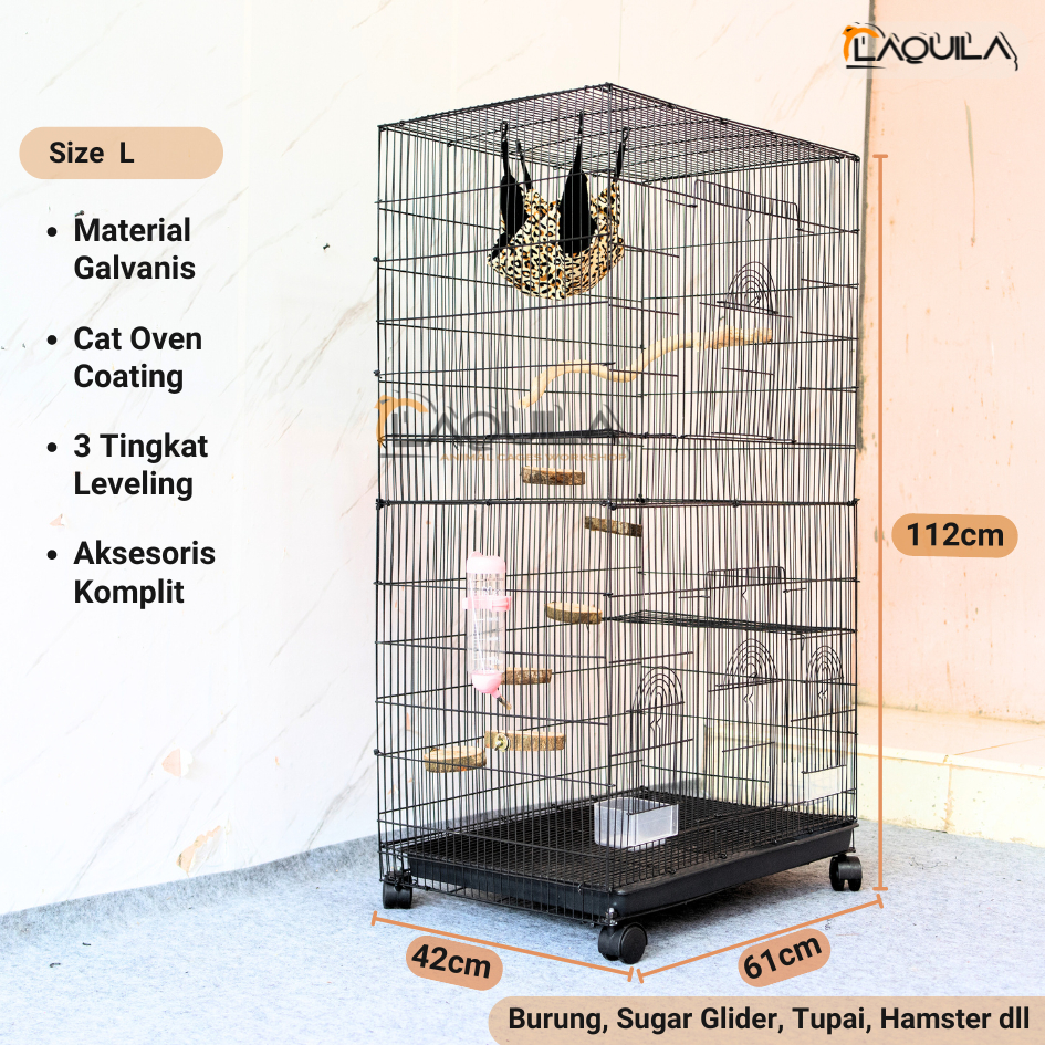 Kandang Galvanis L Sangkar Umbaran 3 Tingkat Burung Sugar Glider Tupai Hamster Size L 61X42X107