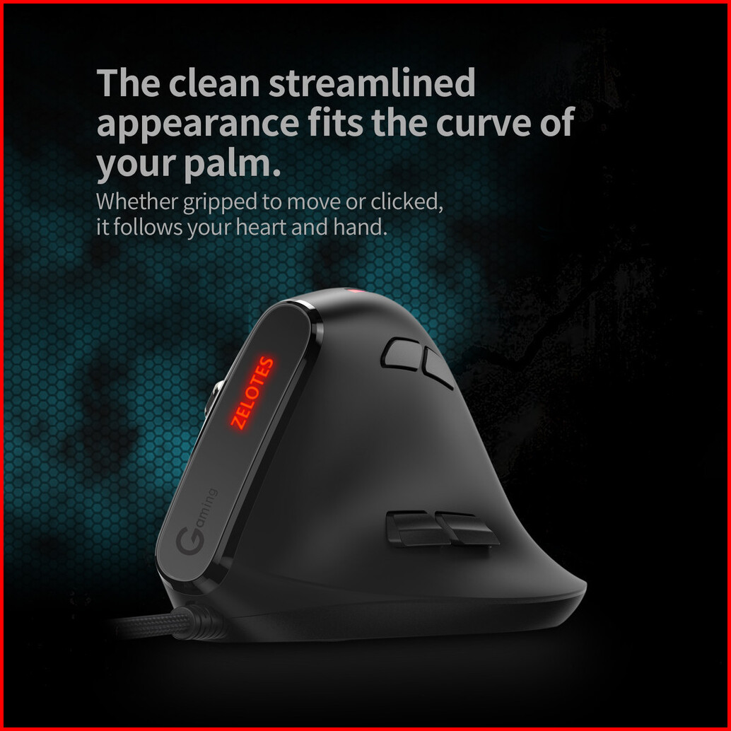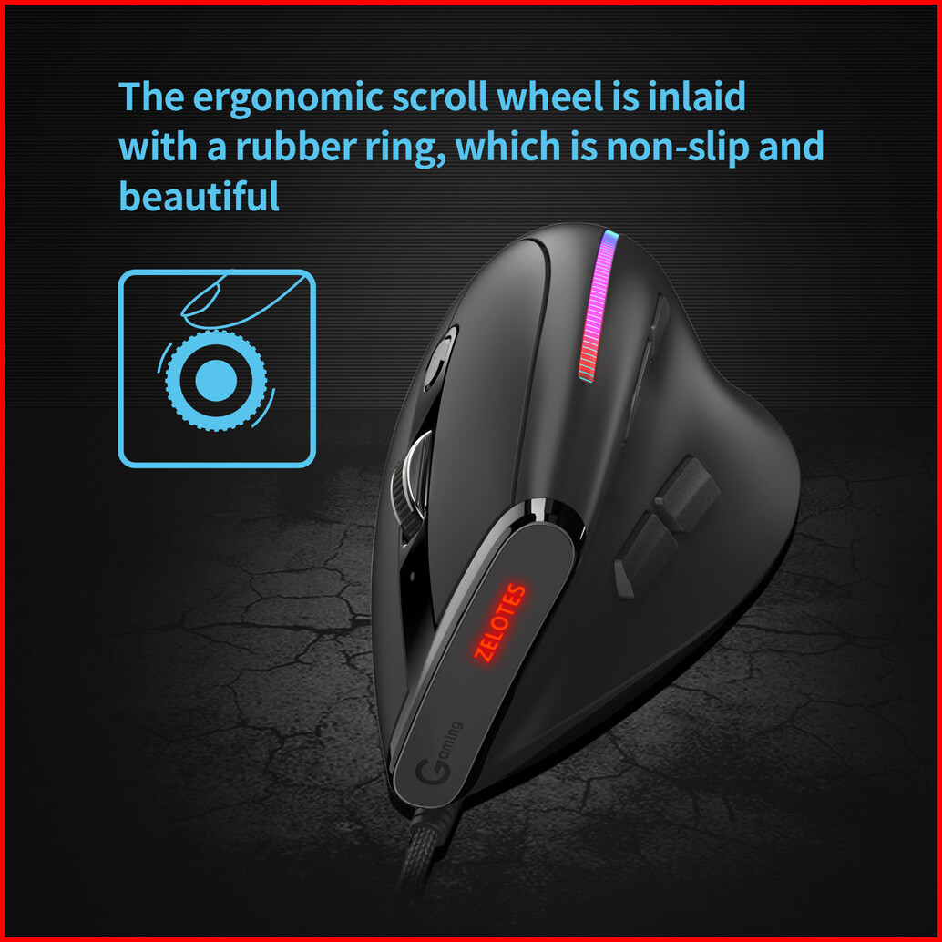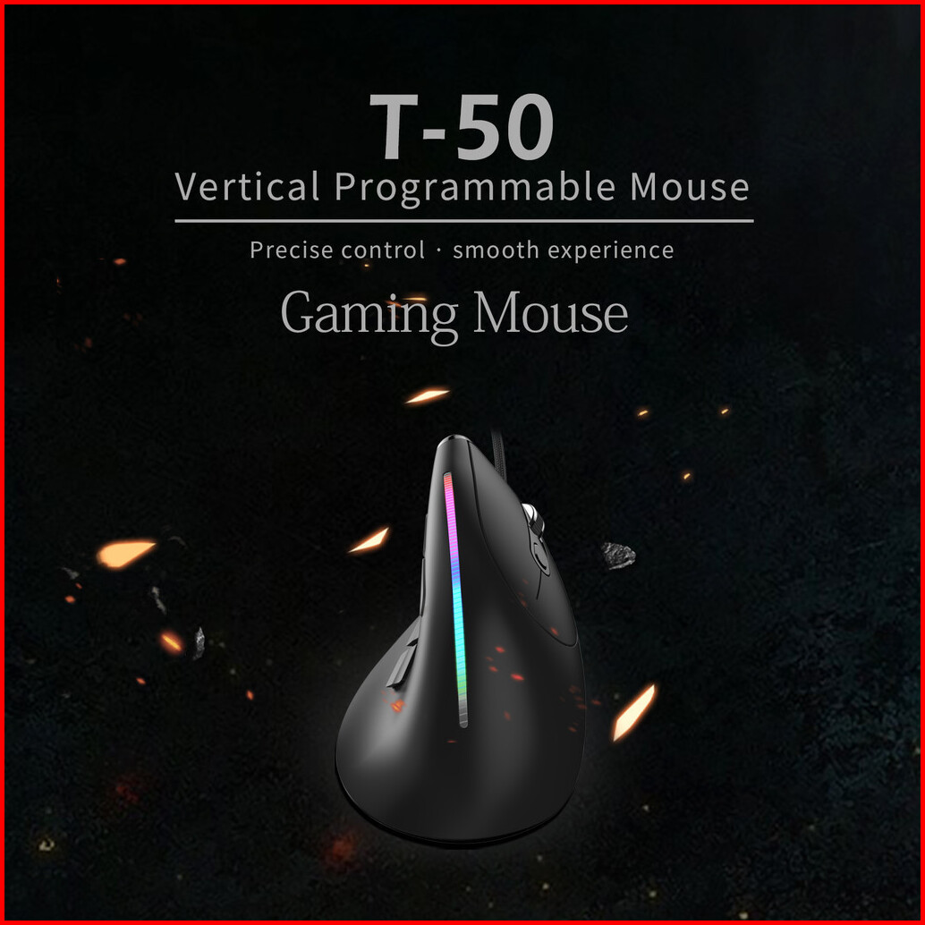 Zelotes T50 Vertical Ergonomic Mouse Rgb Gaming 3200 Dpi 7 Button Programmable Ergonomis