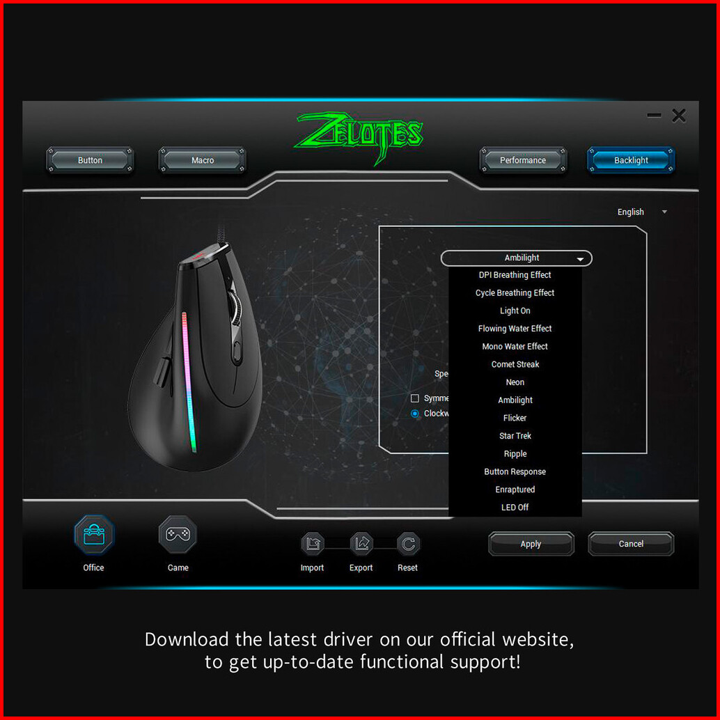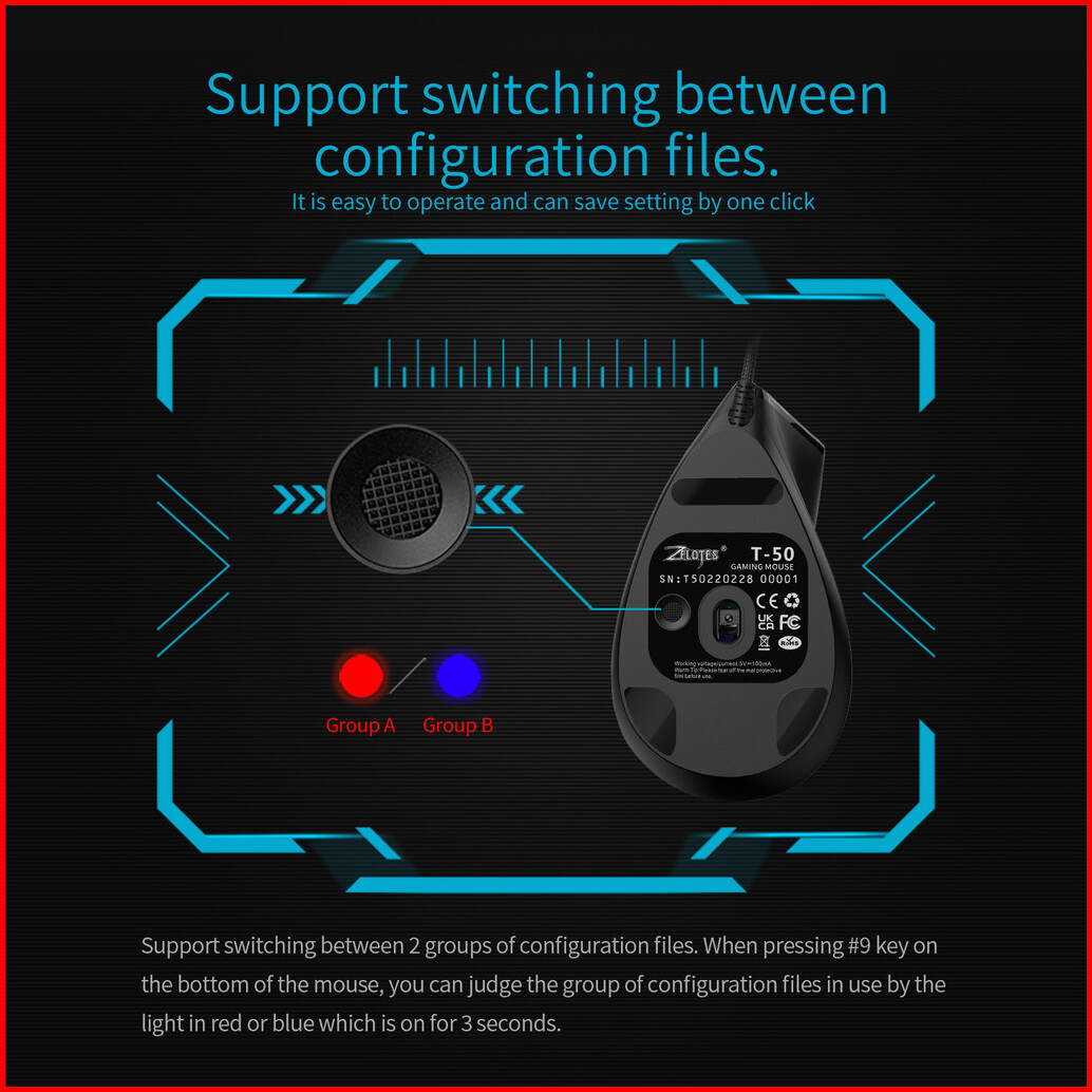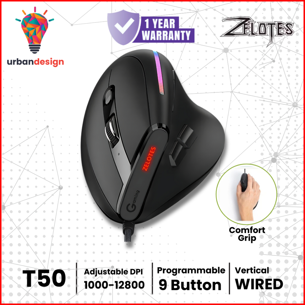 Zelotes T50 Vertical Ergonomic Mouse Rgb Gaming 3200 Dpi 7 Button Programmable Ergonomis