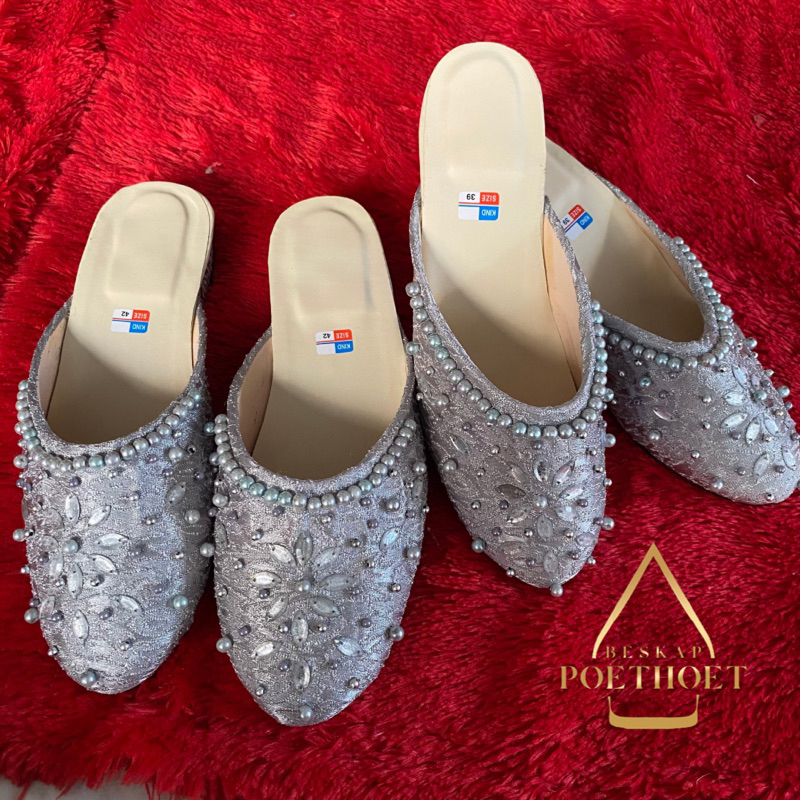 selop pengantin payet jawa silver abu permata pria dan wanita hak sedang 5cm couple