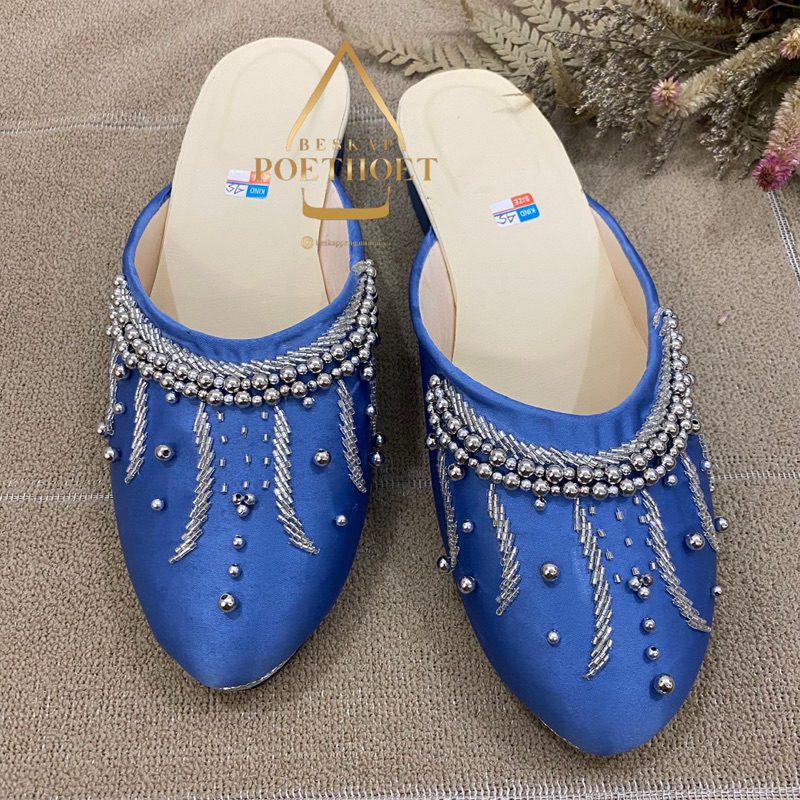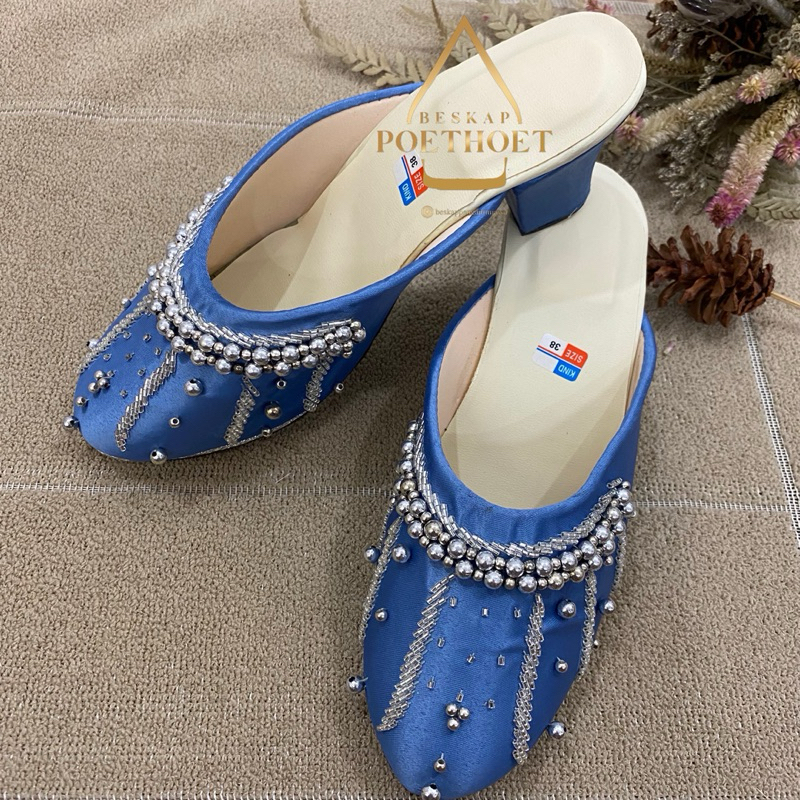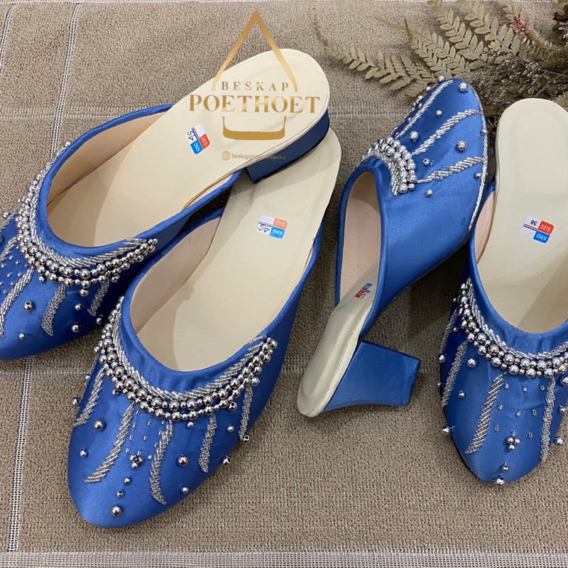 selop sendal sepatu pengantin pria dan wanita jawa payet biru denim blue premium hak sedang couple hak sedang tahu 5cm