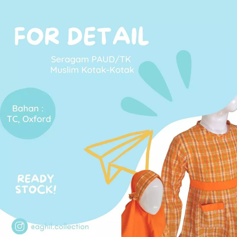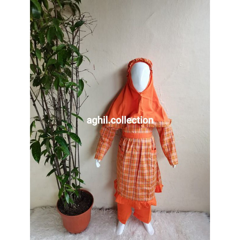 SERAGAM TK/PAUD MUSLIM KOTAK-KOTAK BAJU TK/PAUD MUSLIM KOTAK-KOTAK OREN