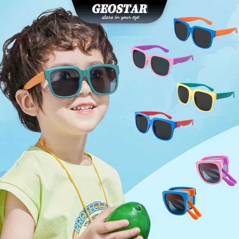 Kacamata hitam lipat anak-anak warna-warni untuk anak laki-laki dan perempuan kacamata pelindung matahari portabel
