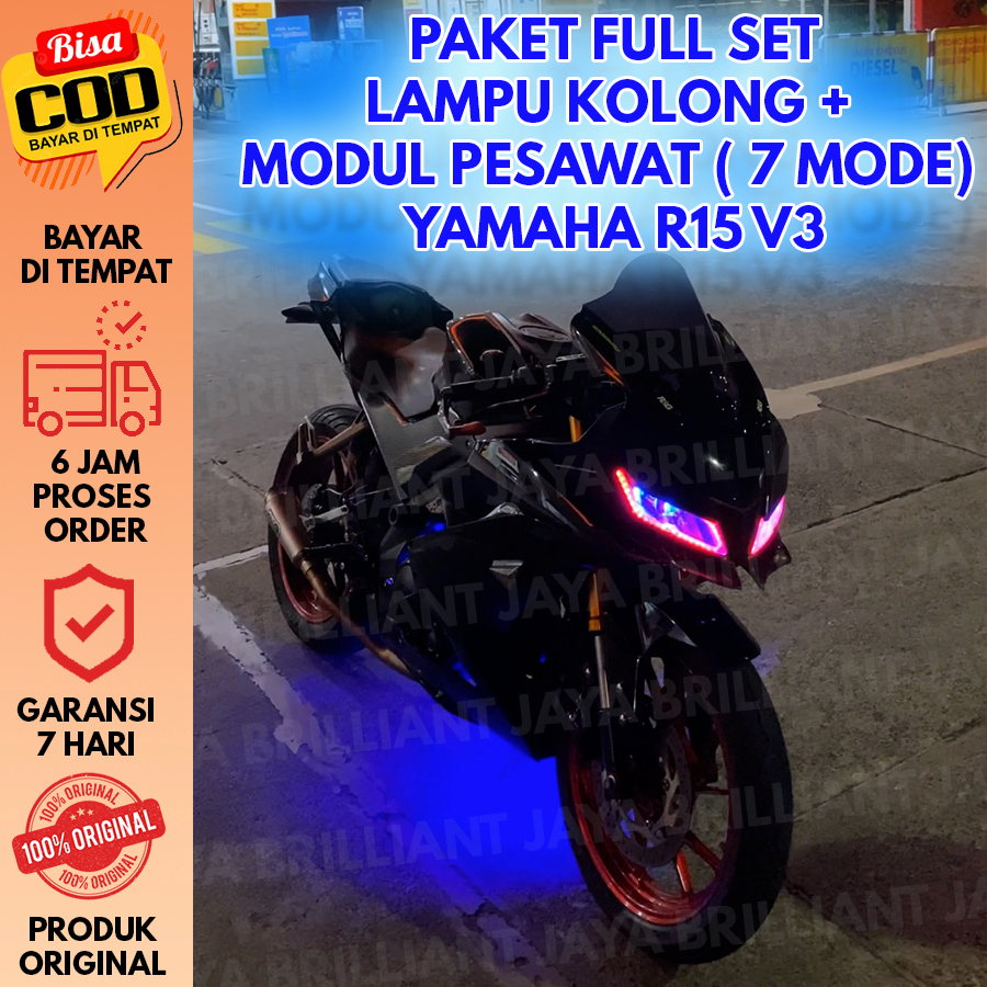 FULL SET LAMPU KOLONG LED YAMAHA R15 V3 + MODUL BLITZ PESAWAT BONUS STIKER HOLOGRAM 2 LAMPU KOLONG + KABEL 3 METER + SAKLAR + MODUL PESAWAT