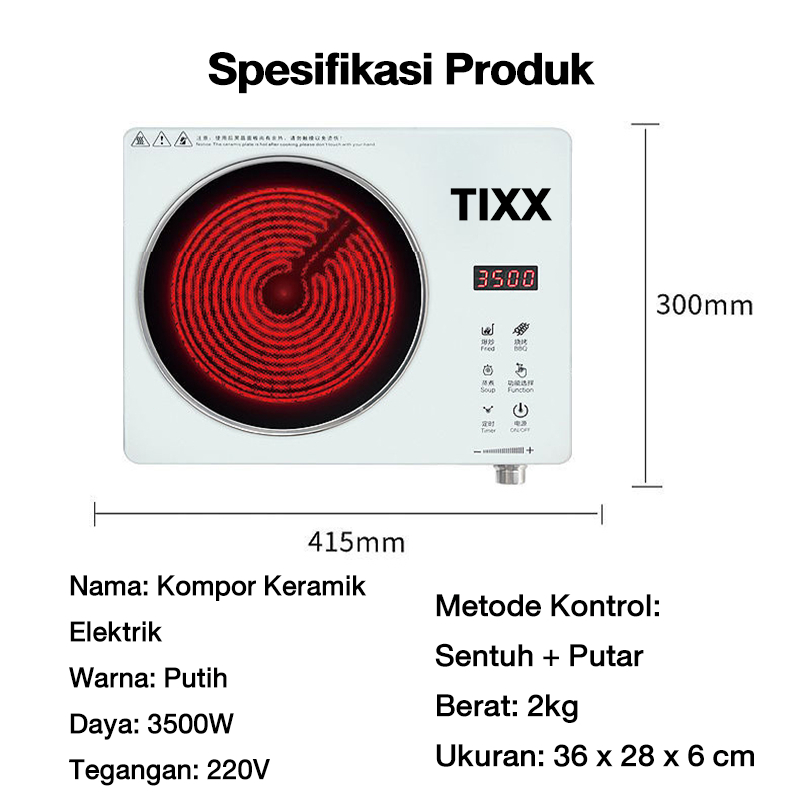 TIXX Kompor Listrik Low Watt Kompor Keramik Listrik Hemat Listrik Bebas Radiasi