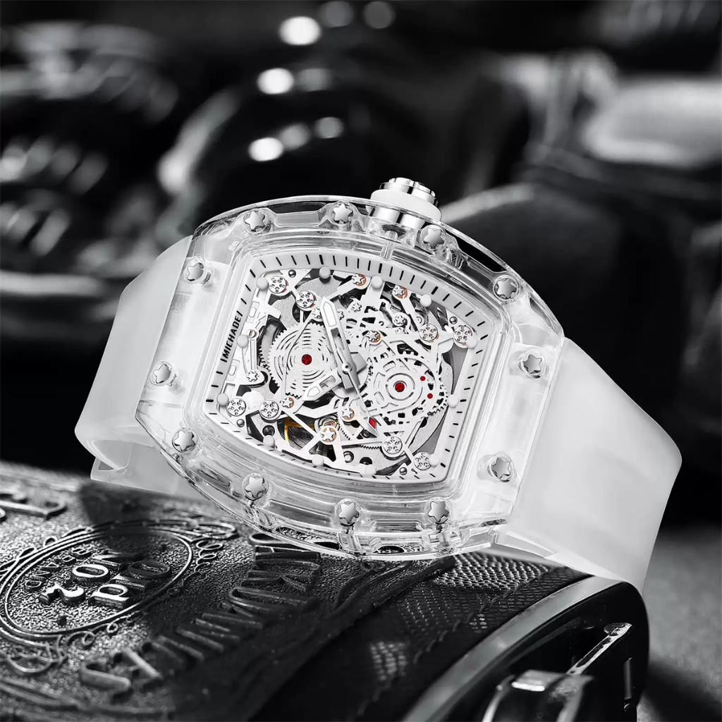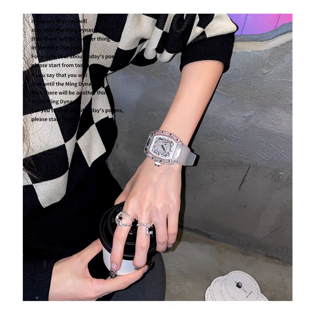 Jam tangan transparan berbentuk tong anggur pria dan wanita, jam tangan mode mahasiswa