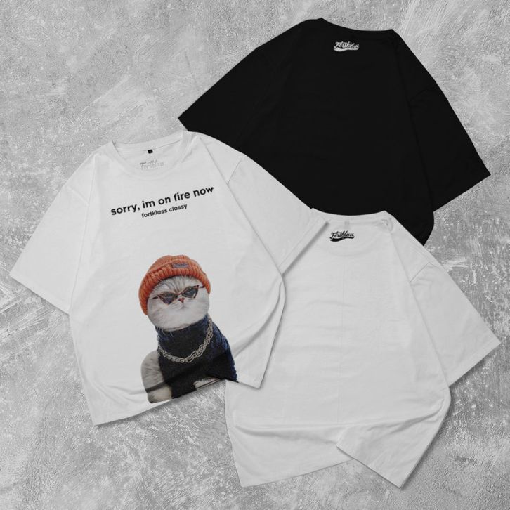 TERLAKU FortKlass Kaos Oversize Cat T-Shirt Cowok Premium egelk