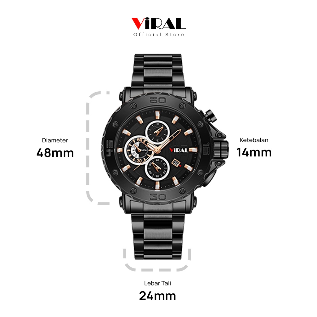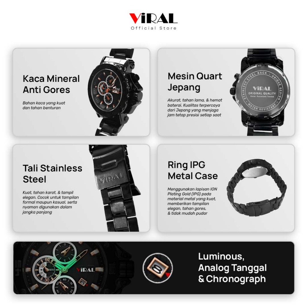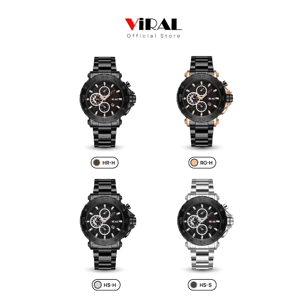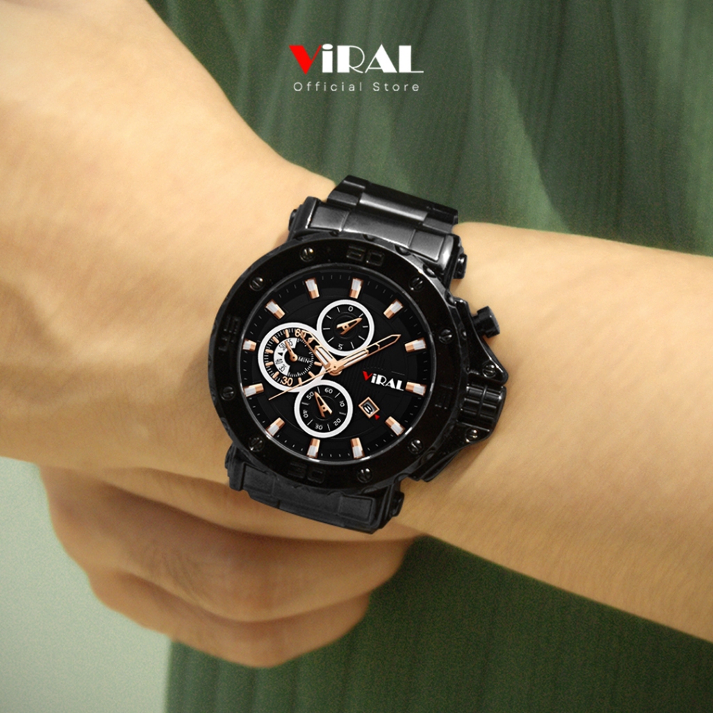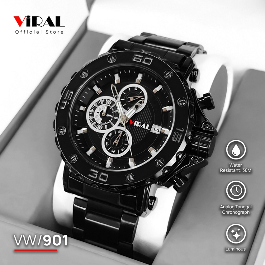 ViRAL Watch - Jam Tangan Pria Chrono Rantai 901 Anti Air Water Resistant 30M Rantai Stainless Steel