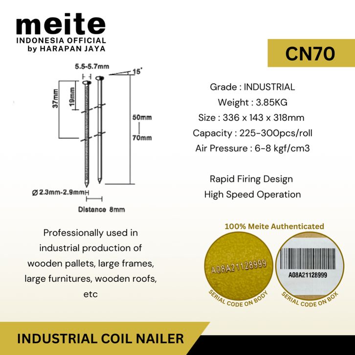 Meite CN70 Mesin Paku Pallet CN 70 coll Nailer . Tembak Palet koll