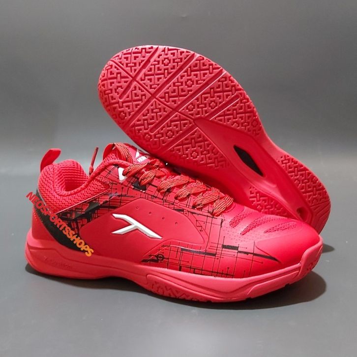 Sepatu Badminton HNDRD Hundred Beast II 2 Red Black White Original