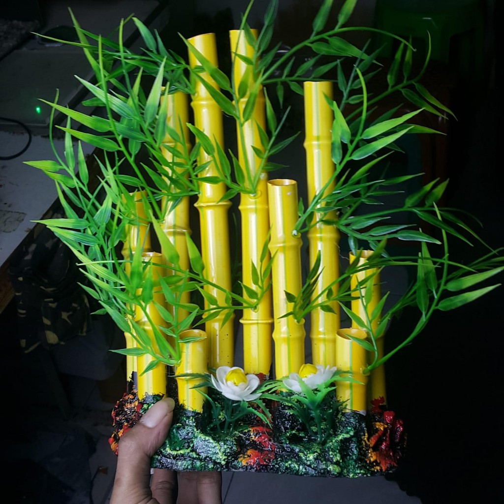 Hiasan dekorasi ornamen aquarium Model Bambu besar PVC dan semen