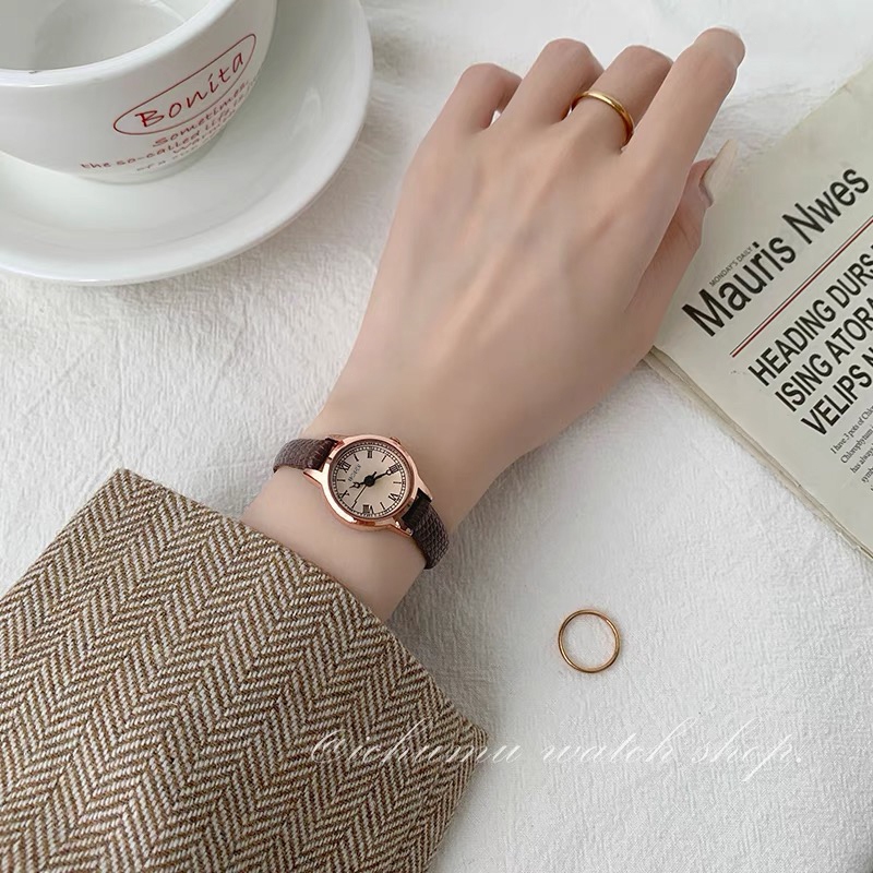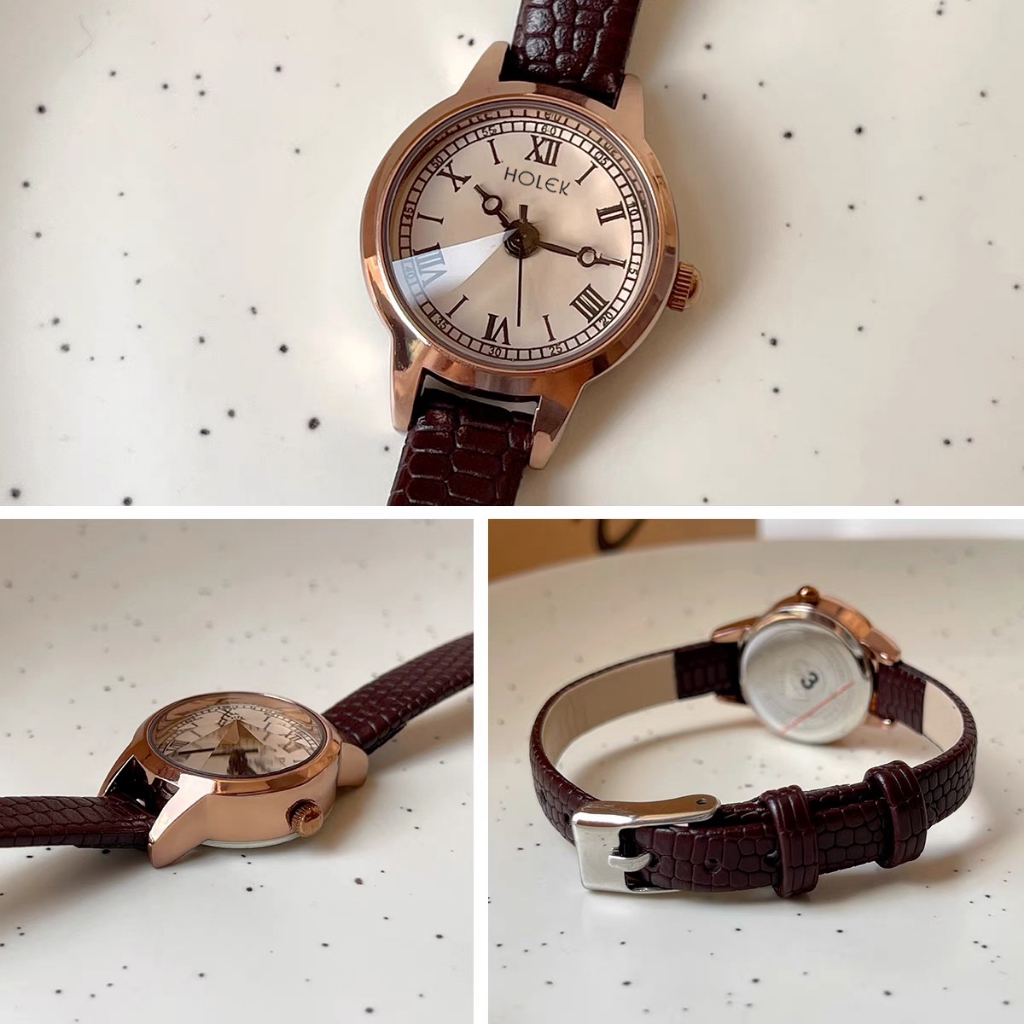 HOLEK 1401 Jam Tangan Wanita Tali Kulit Original Temperamen Retro Simple Quartz Watch Waterproof +Kotak Gratis