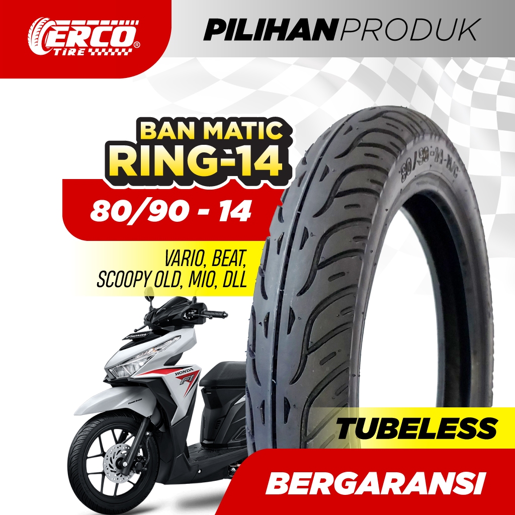 Ban Motor Matic, ERCO 80/90-14 M/C Tubeless (Tidak memakai ban dalam), Standar Ban Depan Motor Beat, Vario, Mio, Scoopy lama