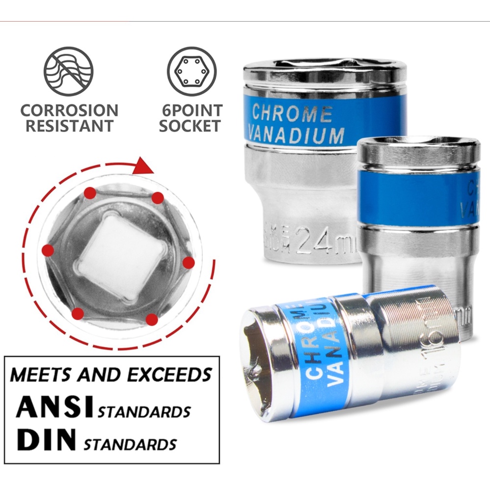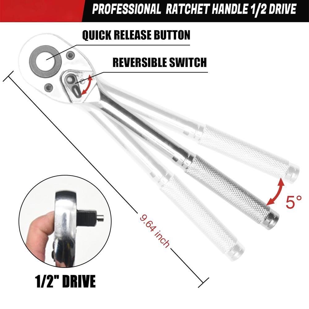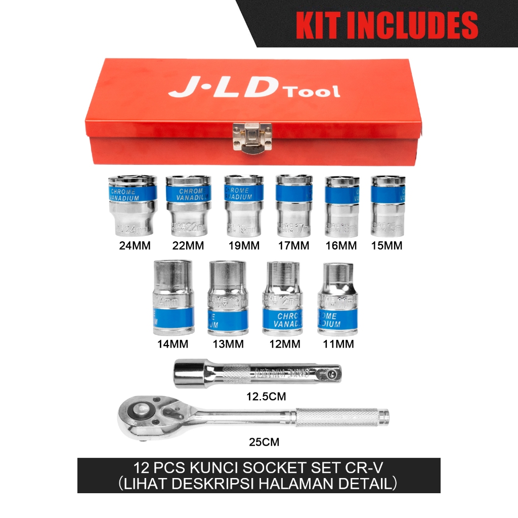 JLD Kunci Shock Motor Mobil Lengkap 12Pcs Buat Buka Honda Yamaha Motor Mobil Socket wrench 1/2" Kunci Rachet Otomatis Qu