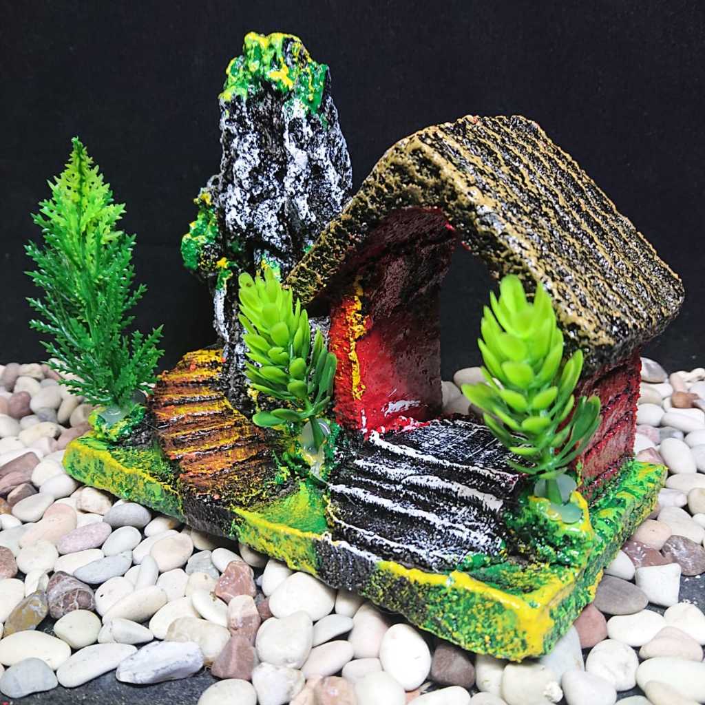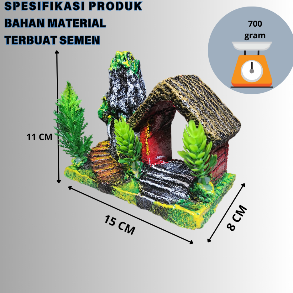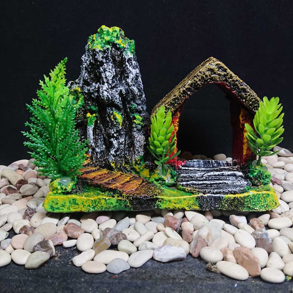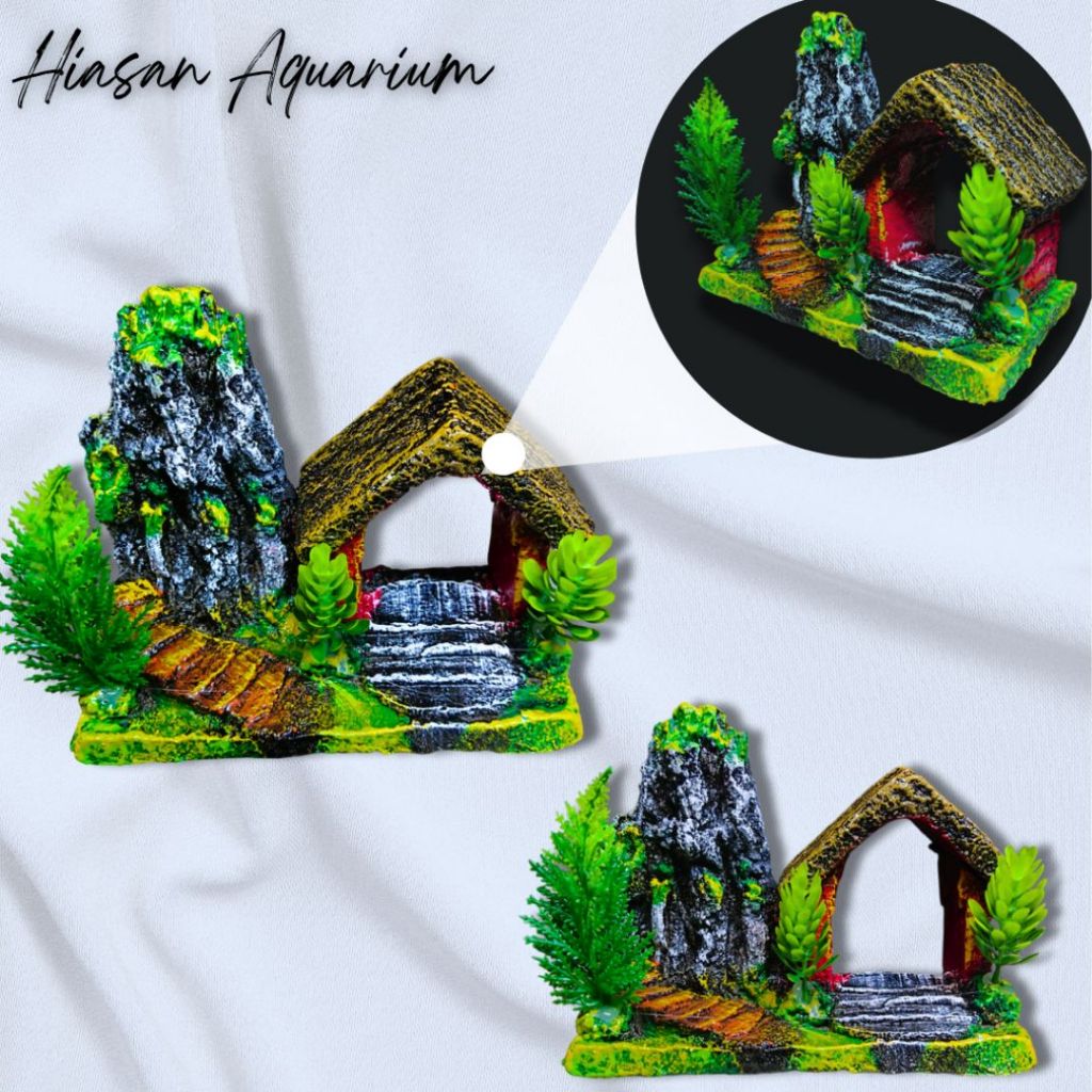 Dekorasi Hiasan Aquarium Aquascape Rumah Tebing Tangga